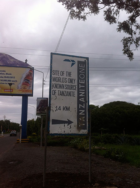 | A sign points the way to the tanzanite mines. (Photo: Will Larson) |